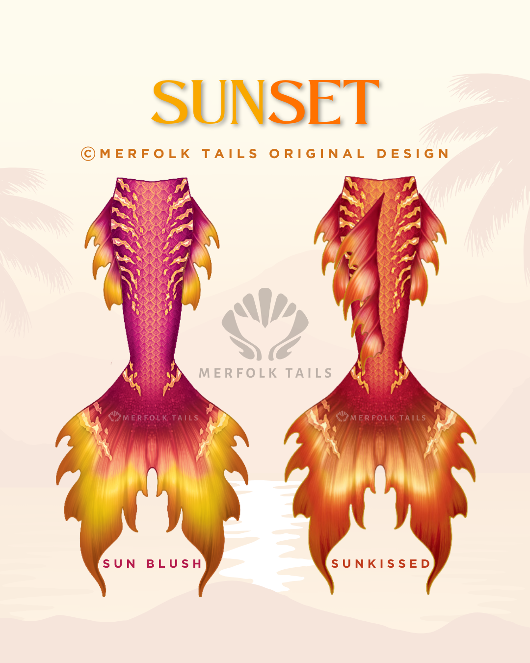 The Sunset Collection is inspired by golden hour moments where sky and sea glow as one. Featuring radiant hues of amber, coral, and soft pinks, each tail captures the warmth, elegance, and drama of dusk. Designed for merfolk who love bold color, fluid movement, and the magic of standing out in every swim.